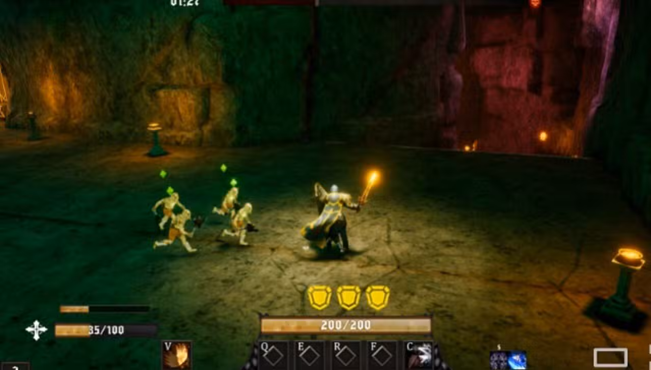 In traditional online RPGs, the tank relies on healers to survive and damage dealers to eliminate threats. Adapting these mechanics to an individual experience required creative design solutions. The protagonist needs to manage his own survival while finding gaps to defeat his opponents. The structure maintains a dynamic pace at all times, without the waiting times common in online groups.