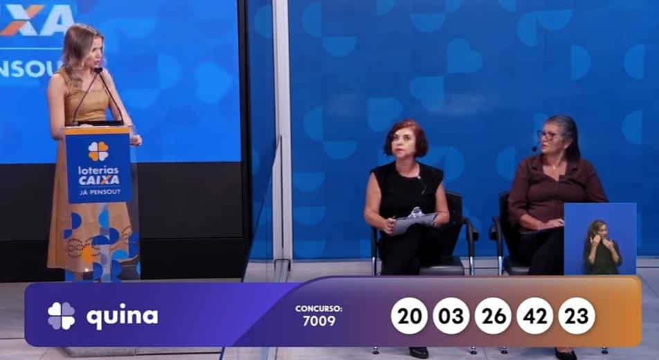 Os números revelados no concurso 7009 da Quina nesta sexta-feira (24) foram 3, 20, 23, 26 e 42. Nenhuma aposta acertou as cinco dezenas. Isso resultou no acúmulo do prêmio principal. Milhares de apostadores foram contemplados em outras faixas, mesmo sem o prêmio máximo e a grande bolada.