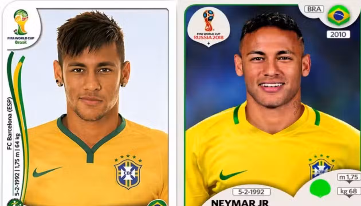 Neymar nahm an der Copas 2014, 2018 und 2022 teil. Ele erschien in diesen Editionen auf allen Alben von Panini. Die letzte Einberufung in die brasilianische Mannschaft erfolgte im Oktober 2023. Damals war der Stürmer gegen Uruguai, in Montevidéu, verletzt. Desde wurde er dann nicht erneut aufgerufen. Panini verwendet die letzten Aufrufe als Hauptreferenz. Bei Jogadores mit geringer aktueller Präsenz ist die Eintrittswahrscheinlichkeit geringer.